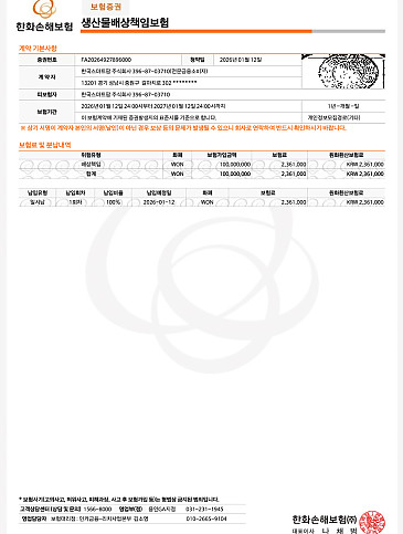 한국스마트팜(주) 한화 가입증명서