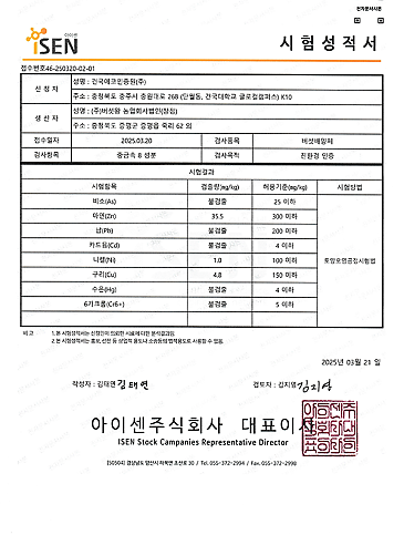중금속서분시험성적서