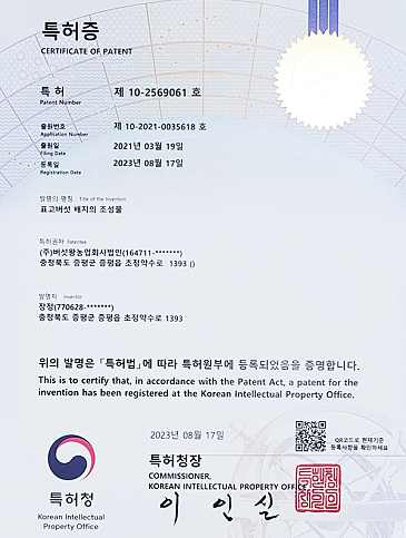 표고버섯 배지의 조성물 특허증