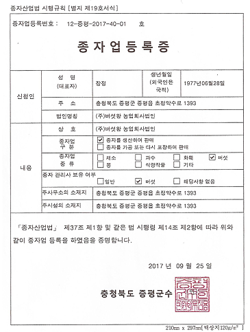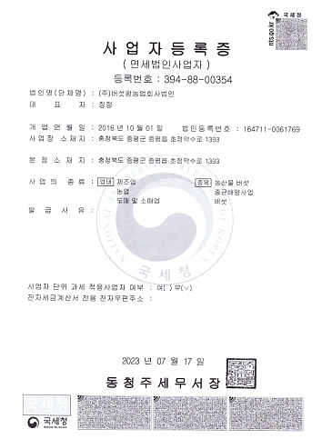 (주)버섯왕농업회사법인 사업자등록증