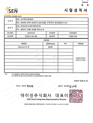 잔류농약463성분 시험성적서