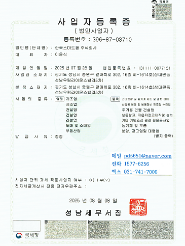 한국스마트팜 사업자등록증
