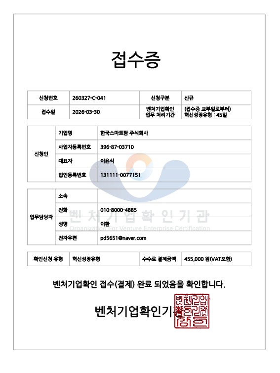 이번 접수는 당사의 스마트팜 기술력과 혁신적 사업 모델을 공식적으로 인정받기 위한 절차로,